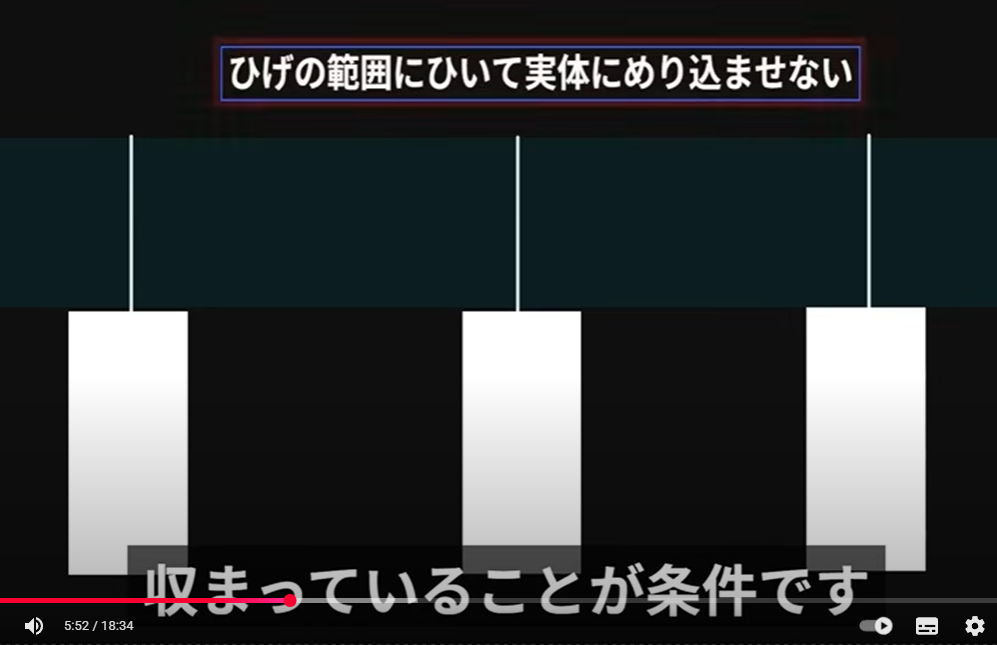 トレンドラインを引く時に、ヒゲ先の中の範囲でどこでもあてるという考え方。