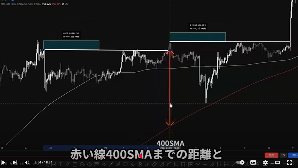 その時々の相場で移動平均線の数値を変えて、うまくあたる場所に変更する点
