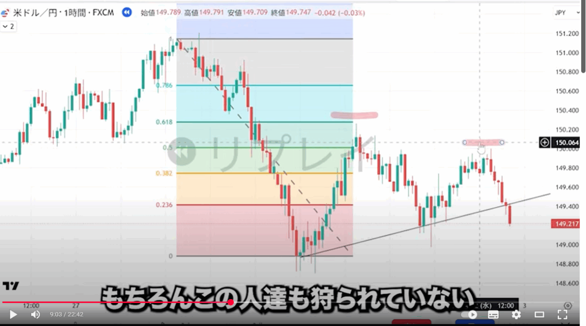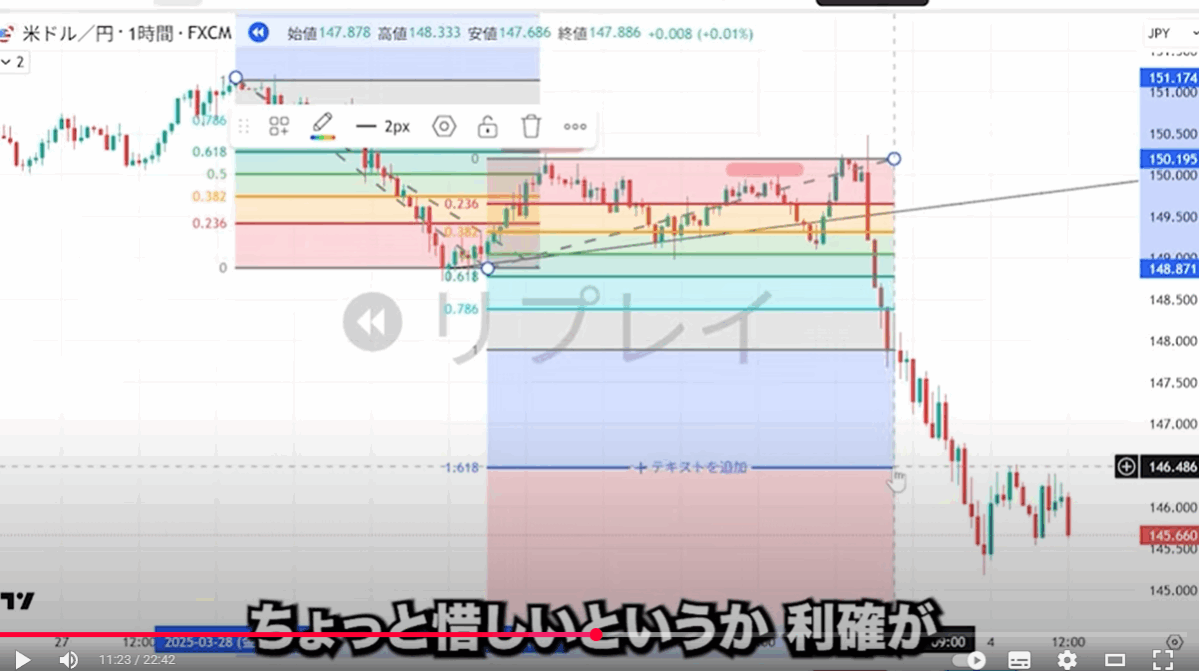 フィボ 0.618まで戻ったからエントリーなどはしない。