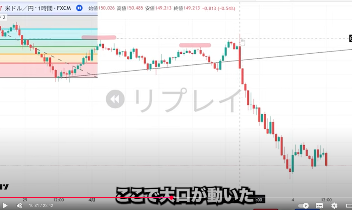 ストップ狩りを見送ったあと、ここで大口動いたと確認。