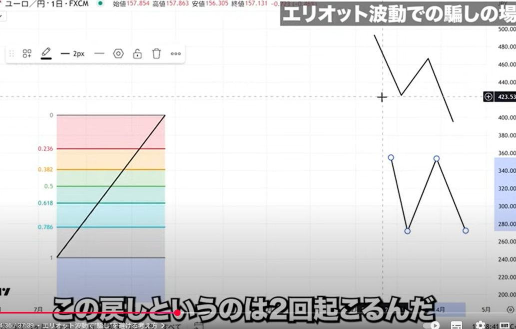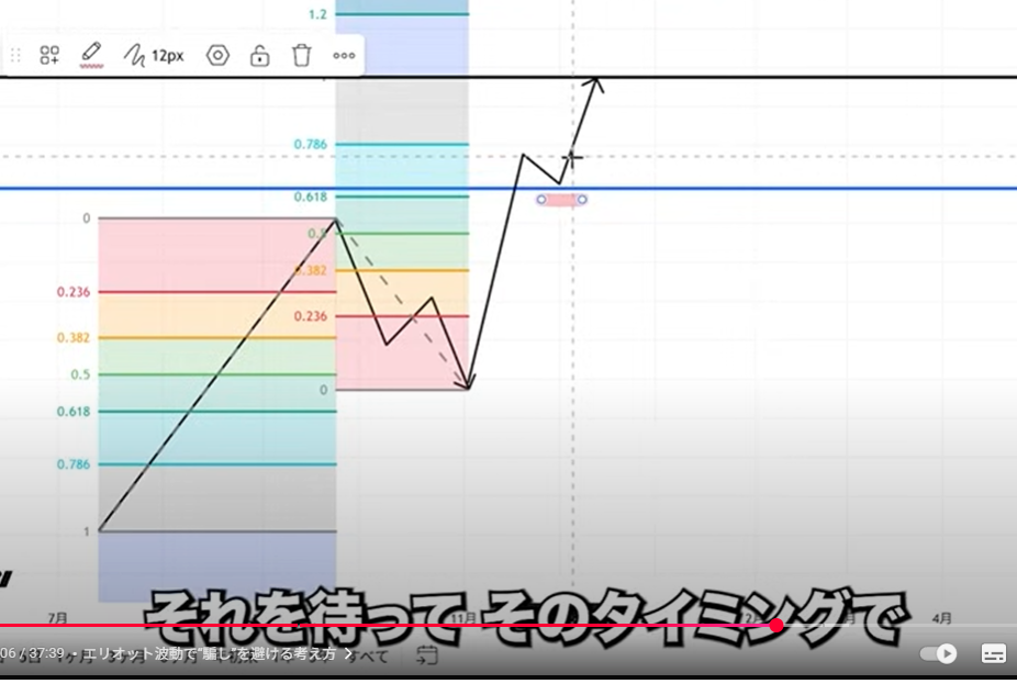 フィボナッチ・エクステンションを使ってどこまで伸びるのか予想できる。
