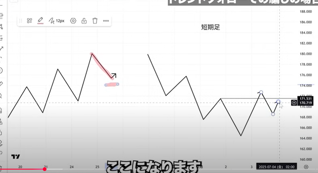 3波に乗り遅れてしまった時、押し目で入る時などに使える。