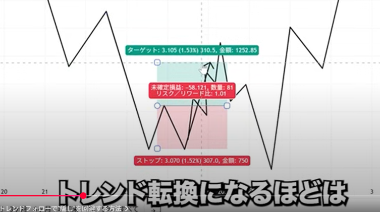 抜けで入っても、損切り位置を高くできるのでRR2.21で取れる