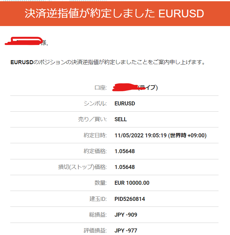すぐにはねあがって安心し、ストップロスを建値決済にしたが…