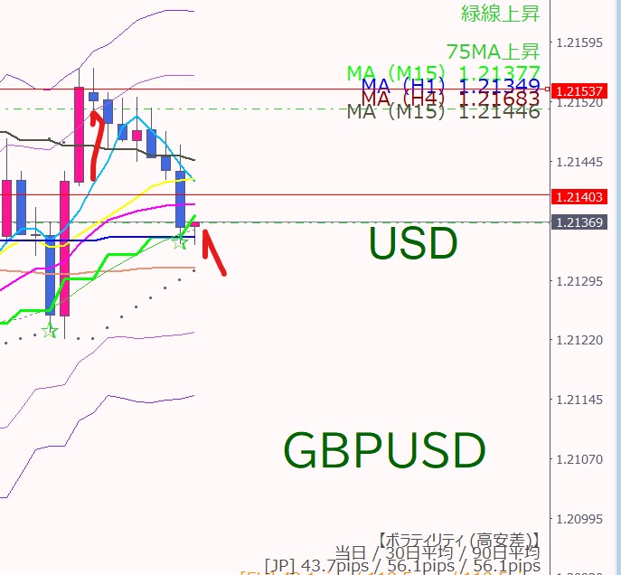 逆に上げてきた。のでドテンするも、すぐにまた下げたのでまたドテン。今度は0.4入れる。