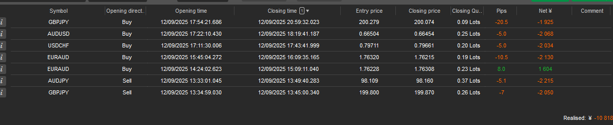 0.コラム合計 -10,818円 今日もぜ不調。 逆三尊ねらい、失敗。 注文を間違えた。損切りは最安値にしなければらならなかった。 日本時間15:30エントリーがいけないのか?