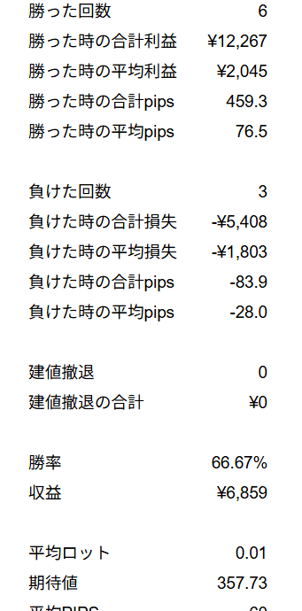 5.集計よすが式 調子が悪い。もうやめよう。 ストキャス手法(デモトレード) 初日連勝してびっりしたが、翌日はぜんぜんだめ。今後に期待。 さんたFX 誤注文をこちらにしてしまった。縮小傾向。 合計(デモ含む) 285円。